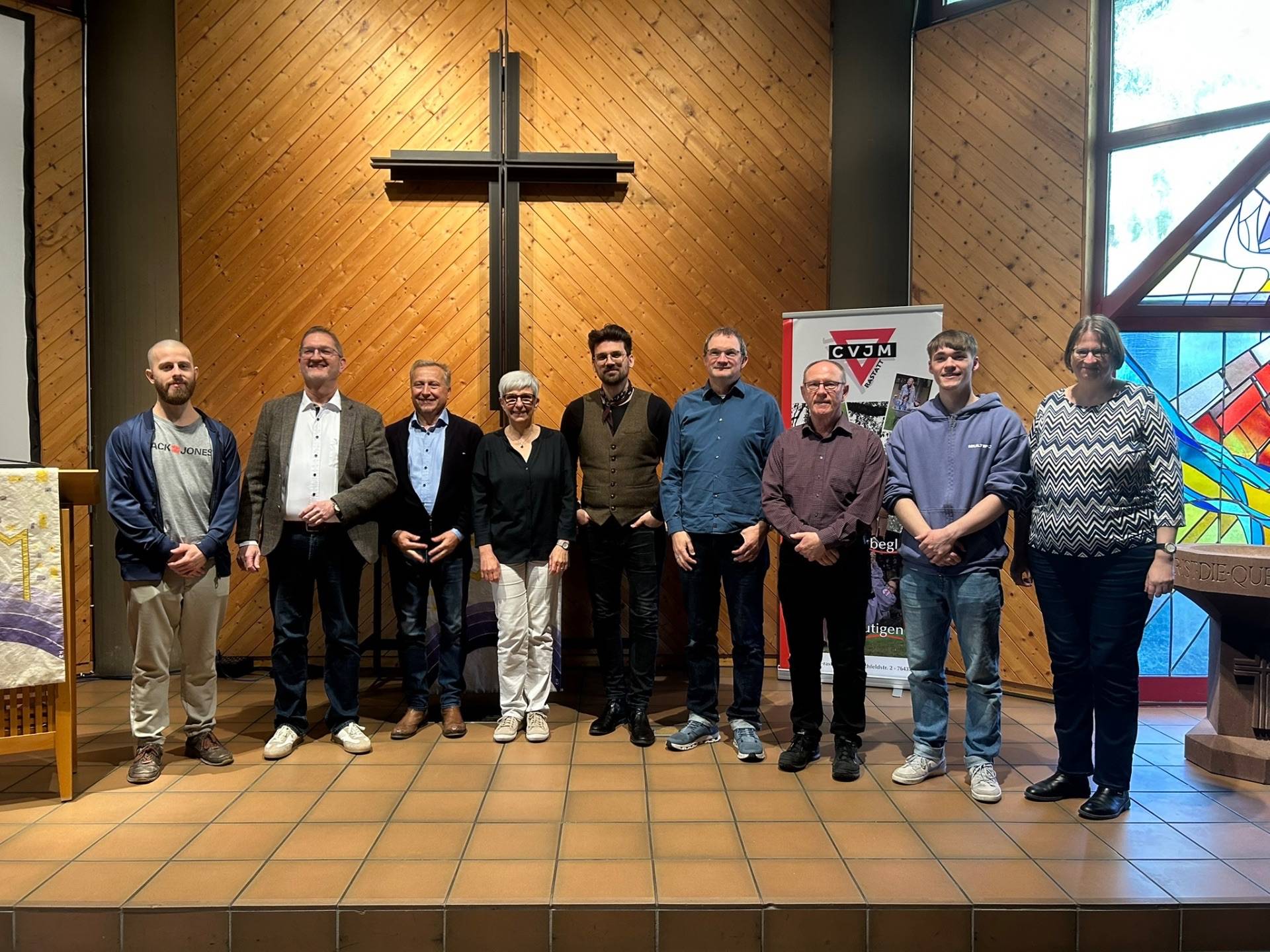 Der Vorstand des CVJM Rastatt (v.l.n.r.): Aaron Pistor (Beisitzer), Thorsten Krampfert (Beisitzer), Helmuth Weiss (Kassier), Claudia Kastner (Schriftführerin), Marc Dietz (2. Vorsitzender), Thorsten Drechsler (1. Vorsitzender), Karl-Otto Schilli (Beisitzer), Jan Peters (Beisitzer), Astrid Hebisch (Beisitzerin)